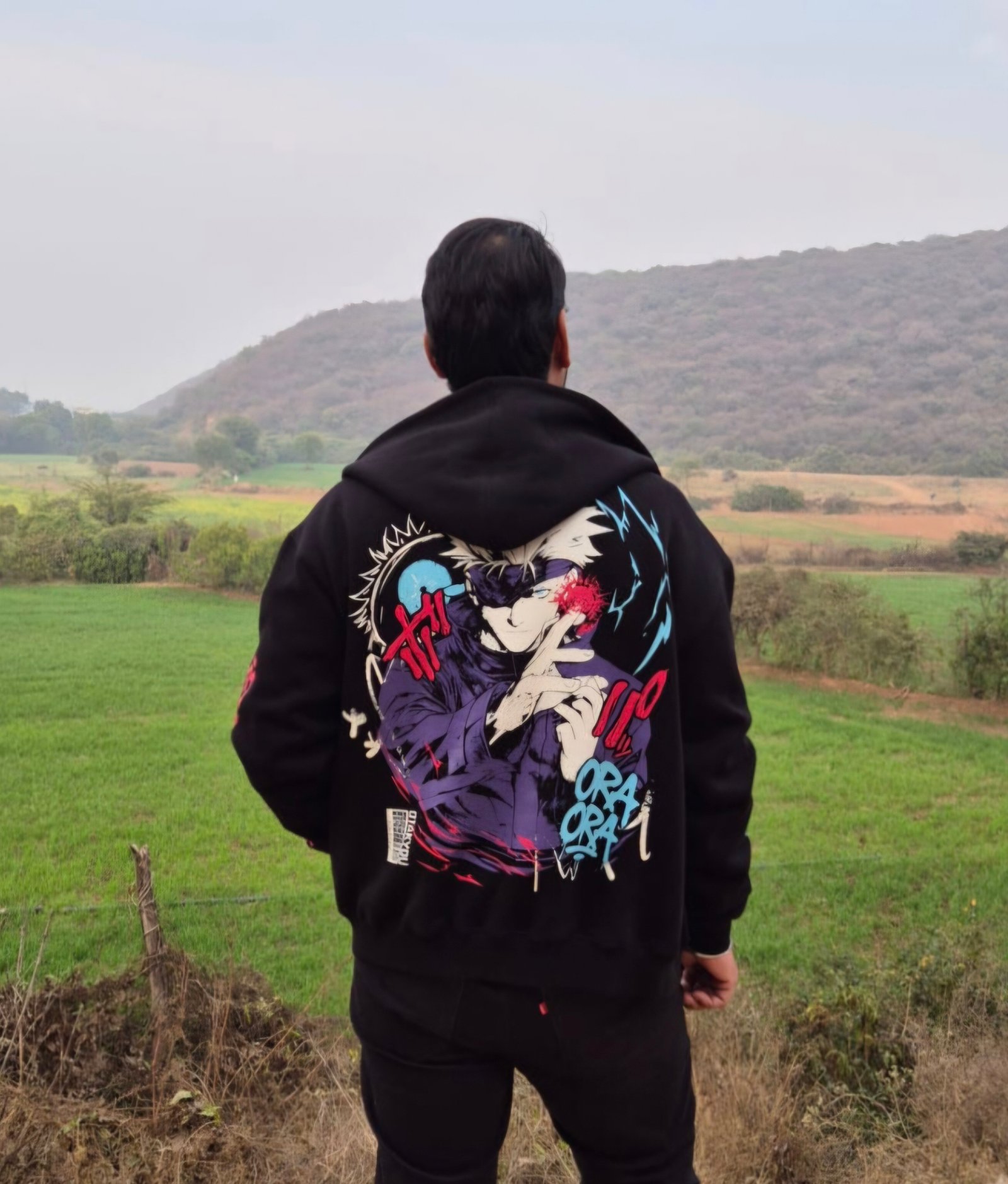 This hoodie captures Gojo Satoru at the exact moment reality bends around him and when Limitless becomes lethal.