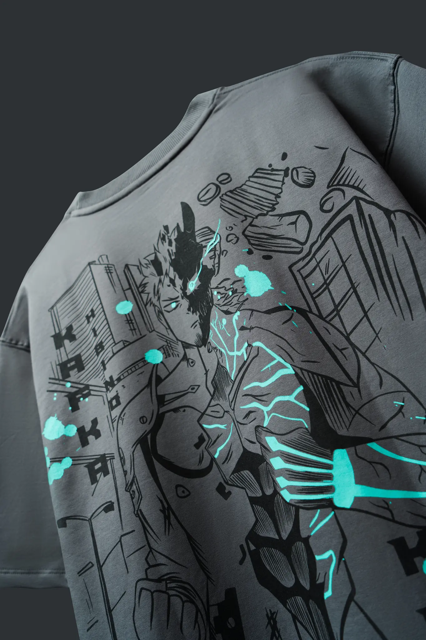 Unleash Kaiju No. 8 in this dual-identity oversized t-shirt.