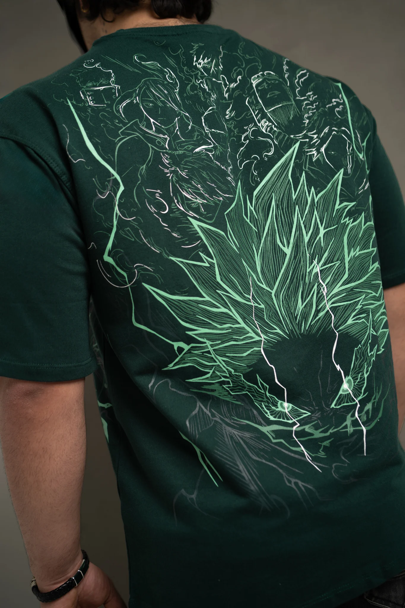 This tee captures the turning point of Izuku Midoriya – the moment when inherited power stops being a burden and becomes purpose. It represents growth under pressure, discipline through pain, and the decision to protect others even when the cost is personal.